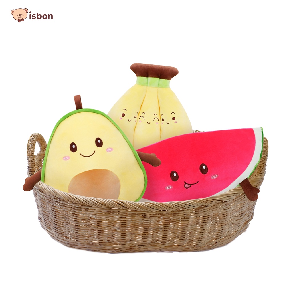 Boneka dengan bentuk buah ini juga akan membawa kesegaran ke dalam ruangan. Semangka dengan warna merah cerah, alpukat dengan wajah ceria, dan pisang yang menggemaskan siap menjadi teman kalian!