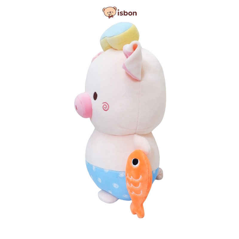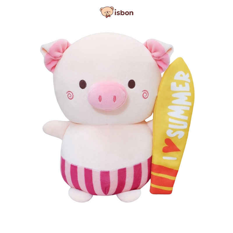 Boneka babi berwarna pink dengan aksesoris series pantai, sangat lucu, bahan lembut dan sangat cocok untuk hadiah/kado.