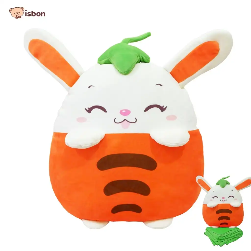 Balmut bantal selimut dengan karakter buah wortel dan boneka rabbit atau kelinci ,balmut ini bewarna orange dan terdapat corak buah wortel di bagian depan bantal,dengan bahan yang hangat halus dan no alaergi,mudah dibawa saat berpergian dan traveling,