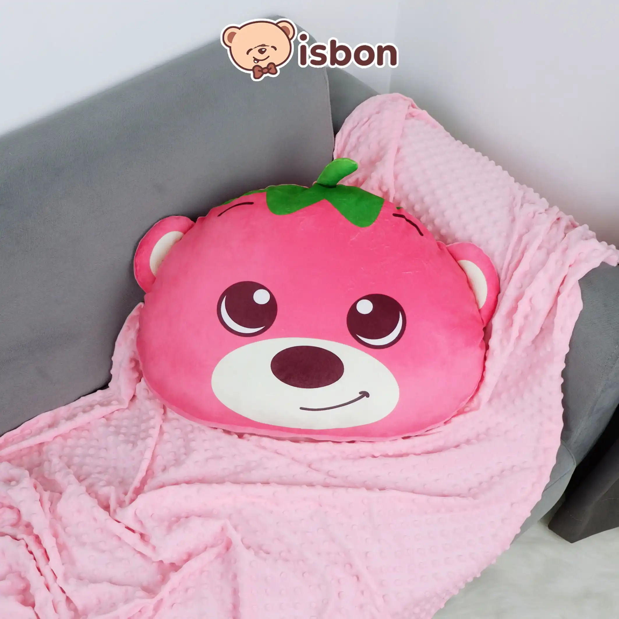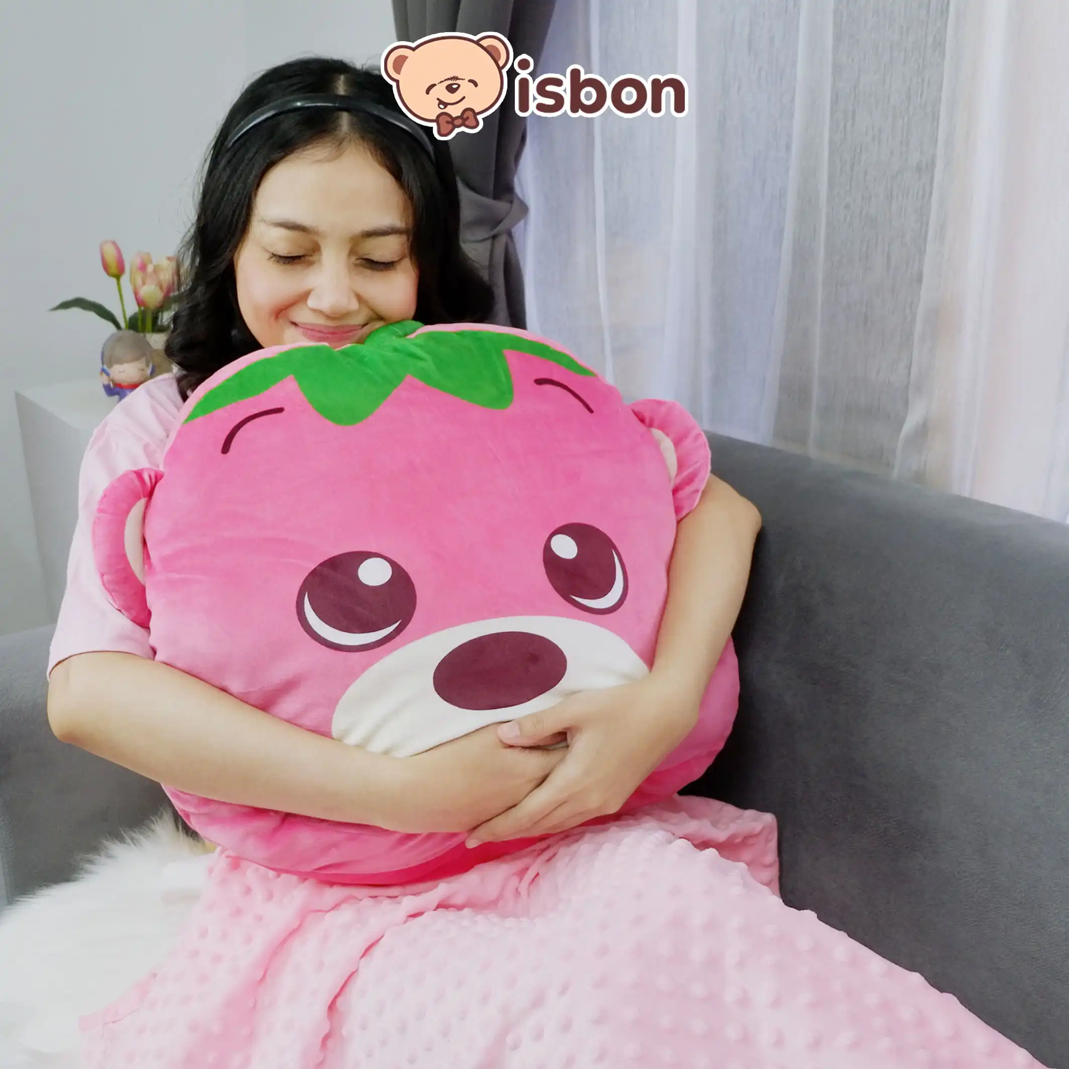 Jadi, dengan membeli boneka kepala bantal selimut karakter beruang warna pink buah berry ini, perjalanan Anda akan menjadi lebih nyaman dan menyenangkan!