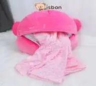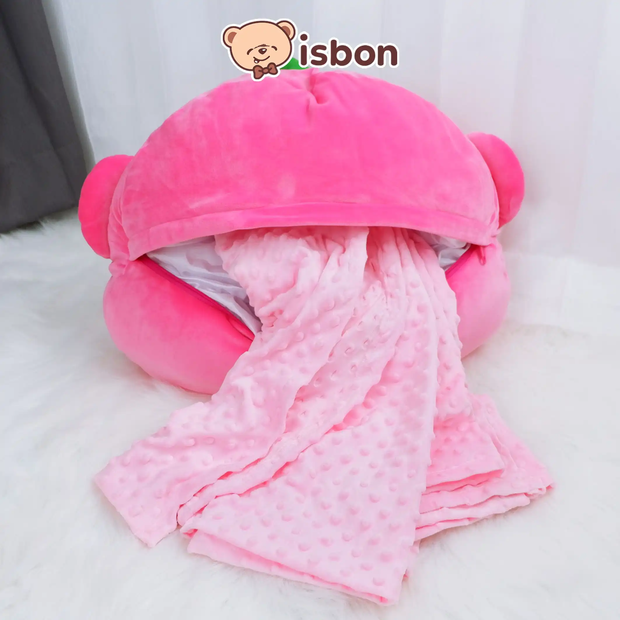 Boneka kepala bantal selimut karakter beruang warna pink ini sangat cocok untuk teman perjalanan Anda.