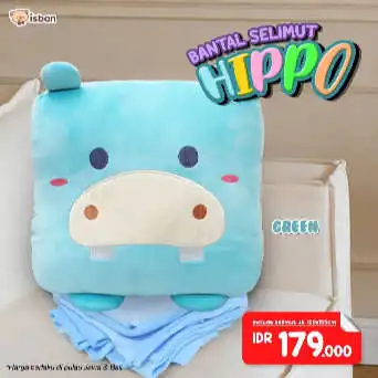 WARNA SELIMUT RANDOM SILAHKAN CHAT ADMIN untuk request warna selimut selama stock ready ya kaka SIZE : BANTAL = 35CM SELIMUT = 100 X 150 CM Kode : BALMUT KTK HIPPO GREEN Bantal selimut lucu dengan motif hippo atau kuda nil ini memiliki warna biru langit yang menenangkan sehingga membuat tidur menjadi lebih nyenyak dan sangat praktis digunakan saat traveling karena tidak memakan banyak tempat ******************************************** Yuk Koleksi Boneka Kalian di ISTANA BONEKA.... Produk Isbon (Istana Boneka) memiliki Sertifikasi SNI dan ISO Kualitas produk premium dan terbaik sehingga tidak mudah rusak dan dapat dicuci GARANSI SEUMUR HIDUP (free repair jahitan lepas, selamanya) Barang sebelum dikirim telah lulus uji QC/ Quality Control Bahan impor best quality premium isi boneka dengan polyester grade A sehingga tidak mudah kempes. Boneka untuk gift ? ingin packing dengan box, goodie bag atau kartu ucapan ? bisa langsung order dengan tambahan kartu ucapan atau box ya Apabila terdapat troble atau komplain bisa langsung chat ke admin yaa. feel free to ask Review kami bintang 5 untuk mendukung store kami :) Open Reseller Diskon mulai 15% Setiap Pembelian 30 Pcs Diskon 20% S&K berlaku Happy shopping!!!!!!