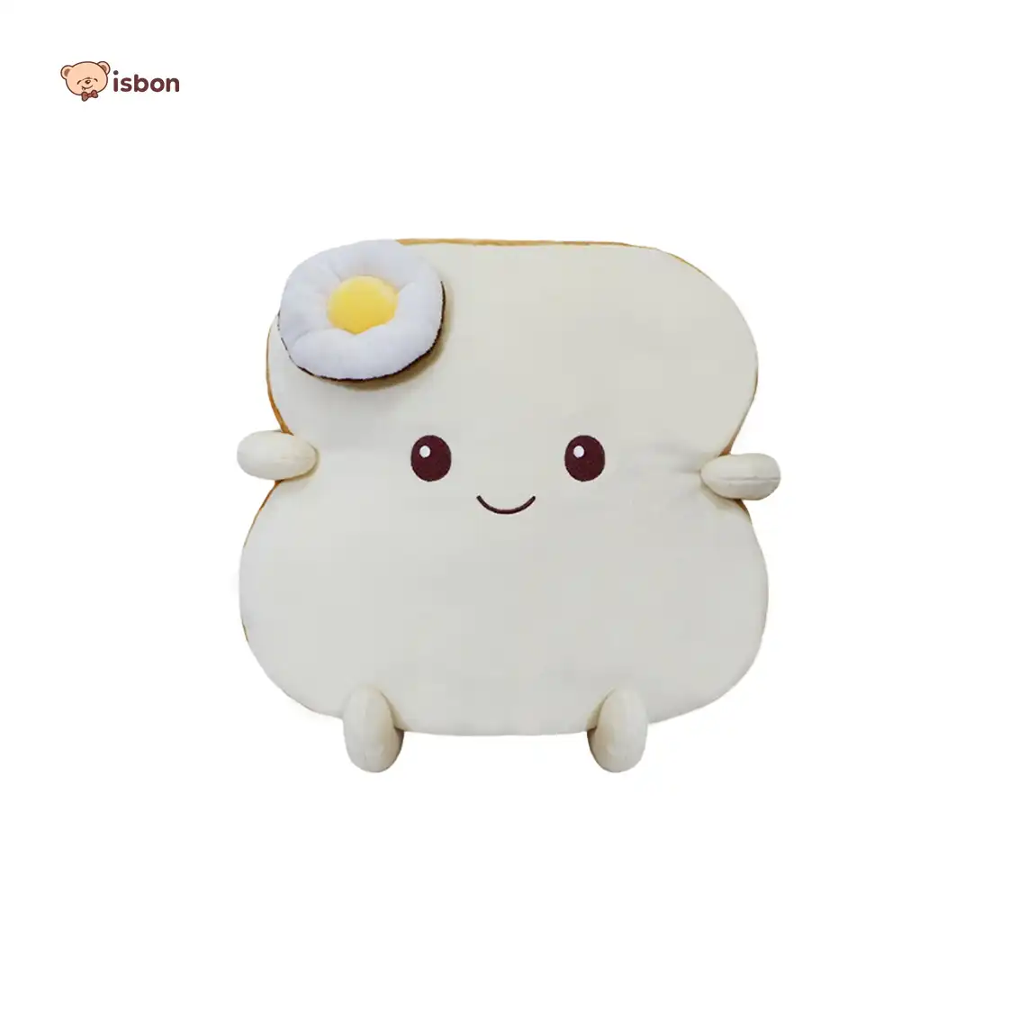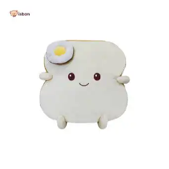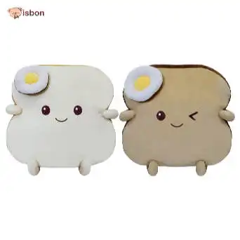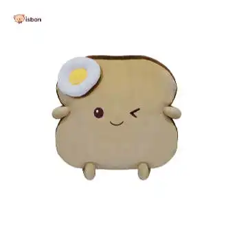 - Boneka bantal dengan karakter roti dengan asesoris telur di bagaian kepala