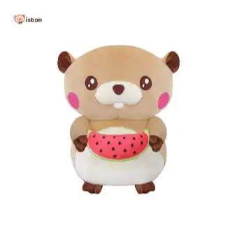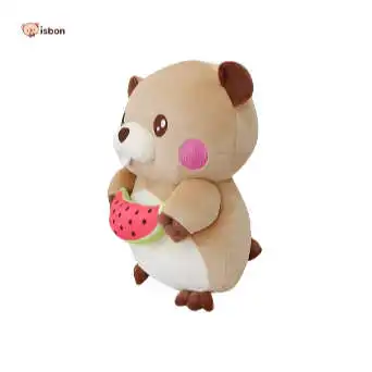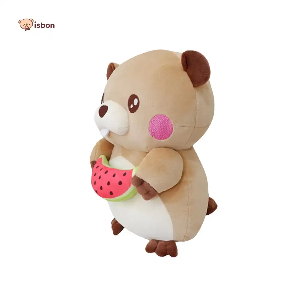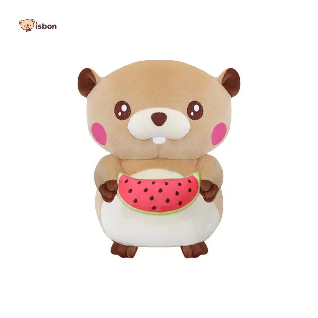 Boneka dengan karakter hewan berang-berang dan tambahan asesoris semangka yang digunakan .
