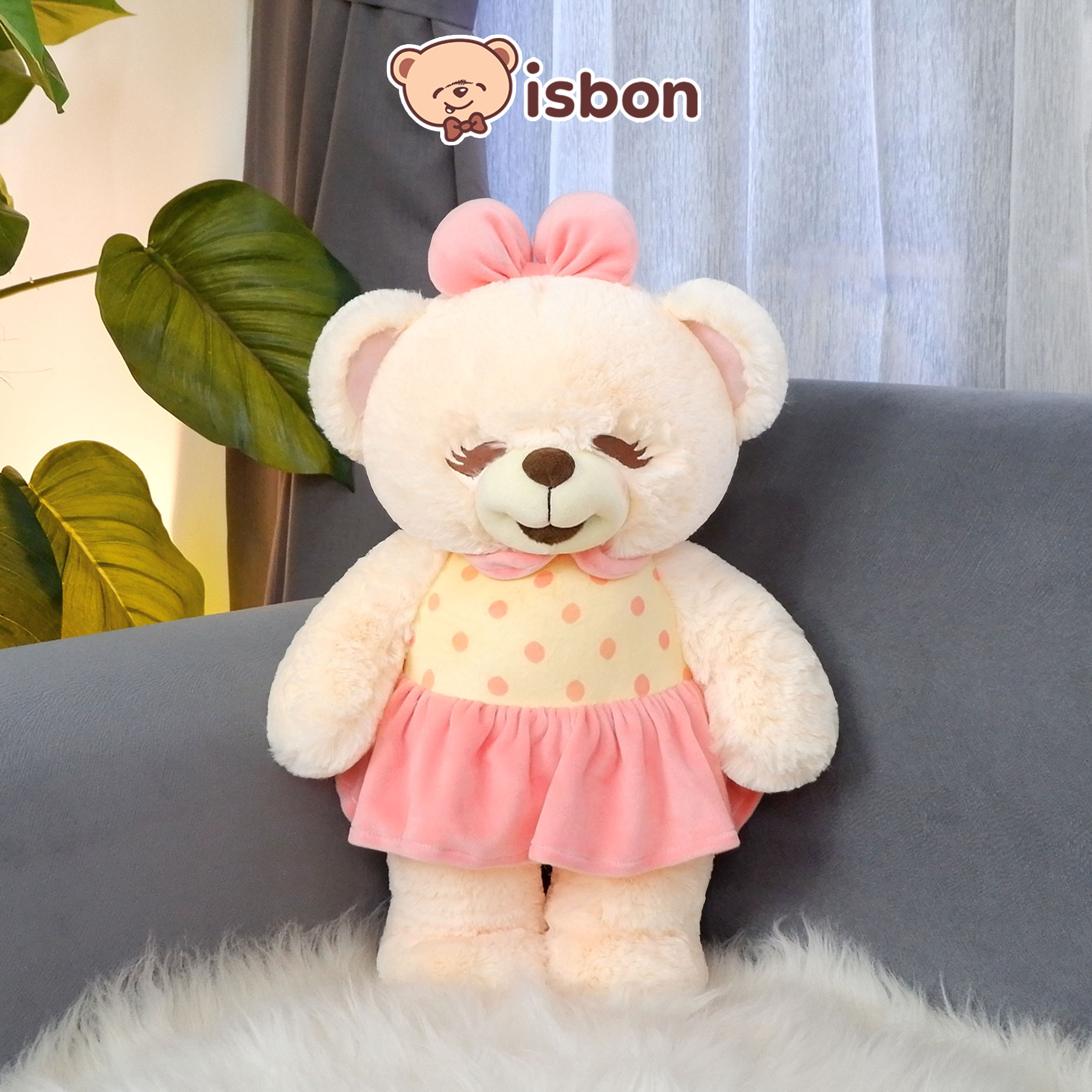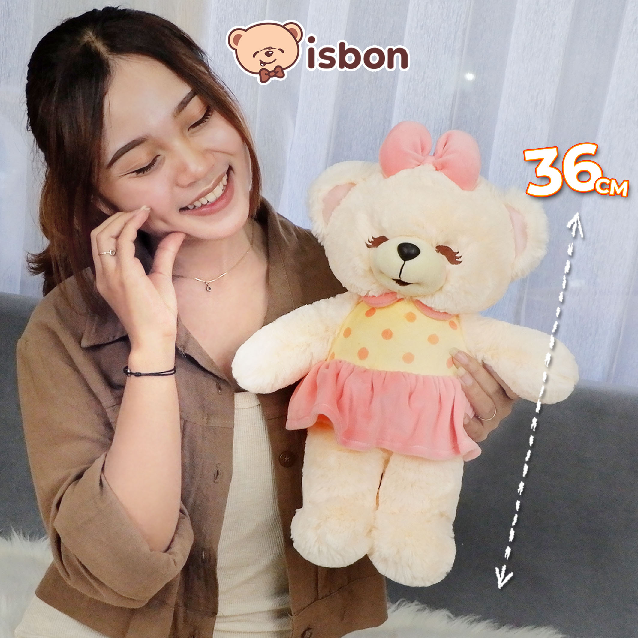 Boneka Beruang Bonita Cheerfull hadir dengan baju kuning corak bintik bulat pink. Rok pendek warna pink menambah kesan ceria. Dilengkapi pita kepala, boneka ini menjadi mainan anak yang lucu dan menarik. Cocok sebagai hadiah spesial untuk anak.