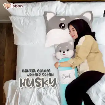 Guling Ukuran Jumbo dengan karakter anjing husky ,boneka ini memiliki deisgn binatang kucing yang lucu dan menggemaskan,boneka ini nyaman digunakan ,bahan halus dan lembut cocok untuk bersantai dengan keluarga .