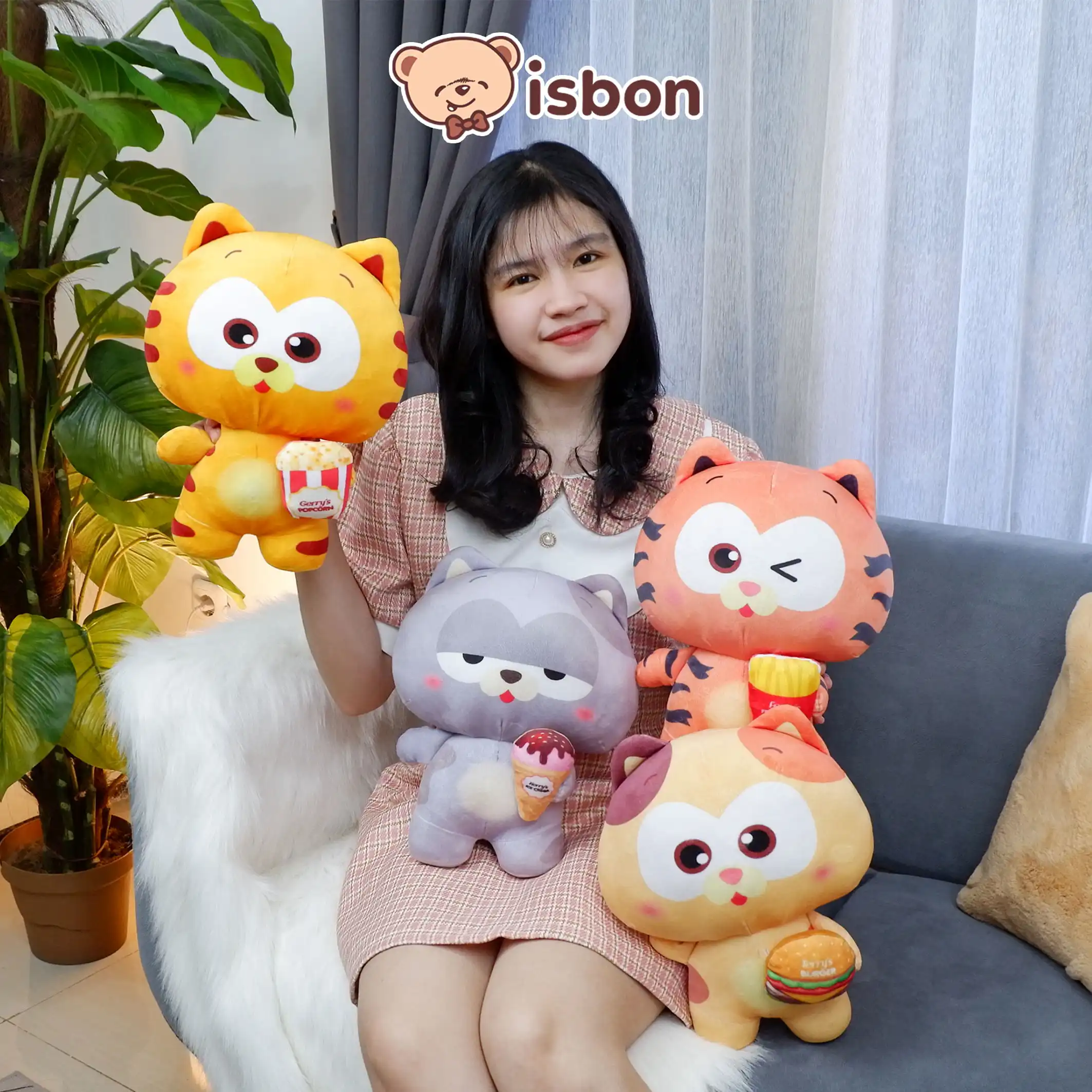 Hadiahkan boneka kucing lucu yang satu ini untuk si kecil kesayanganmu! Boneka bernama Gerry ini memiliki motif tubuh loreng yang unik dan ekspresi lucu yang menggemaskan. Dengan aksesoris makanan dipegangnya, Gerry siap menemani si kecil dalam bermain dan berpetualang.