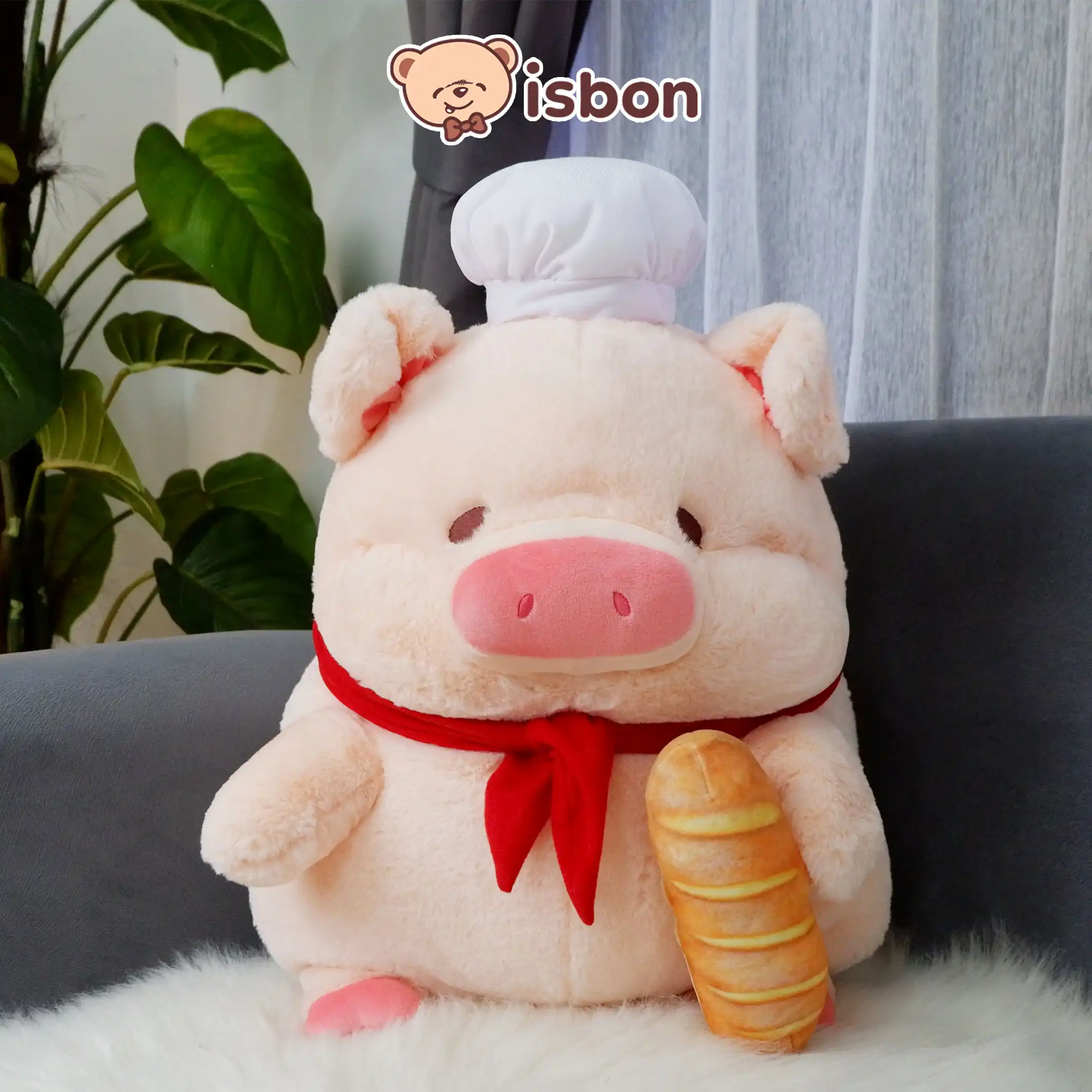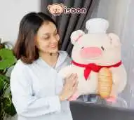 Boneka Babi Piggy with Bread adalah boneka lucu berukuran 38cm dengan desain unik berbentuk babi yang menggantungkan roti di lehernya dan memakai topi chef nya. Warna pink yang manis membuatnya cocok sebagai hadiah ulang tahun untuk anak-anak maupun orang spesial.