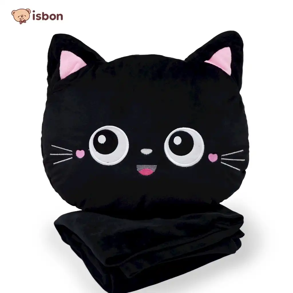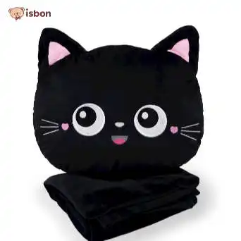 Balmut bantal selimut dengan karakter kucing dengan warna hitam dan ekpresi wajah yang lucu sangat mudah dibawa saat berpergian jauh atau traveling,dengan bahan yang lembut dan hangat,non alergi dan aman digunakan untuk anak anak.