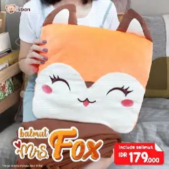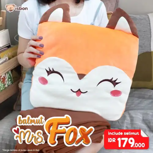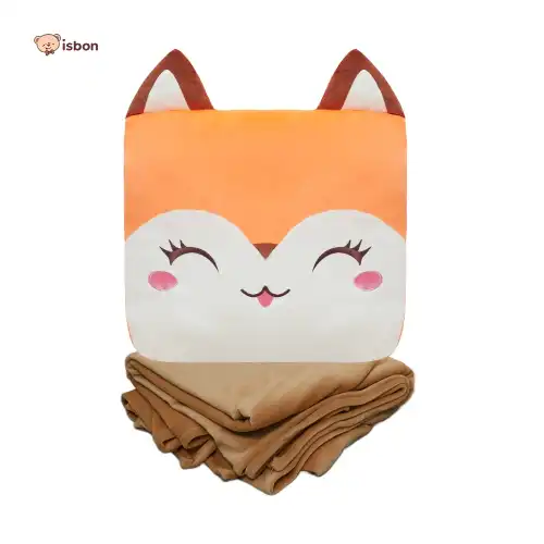 Bantal selimut lucu dengan karakter hewan rubah atau fox yang menenangkan sehingga memembuat tidur menjadi lebih nyenyak dan sangat praktis digunakan saat traveling karena tidak memakan banyak tempat