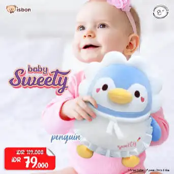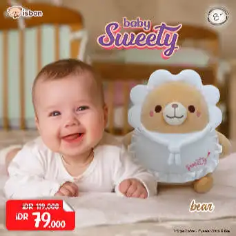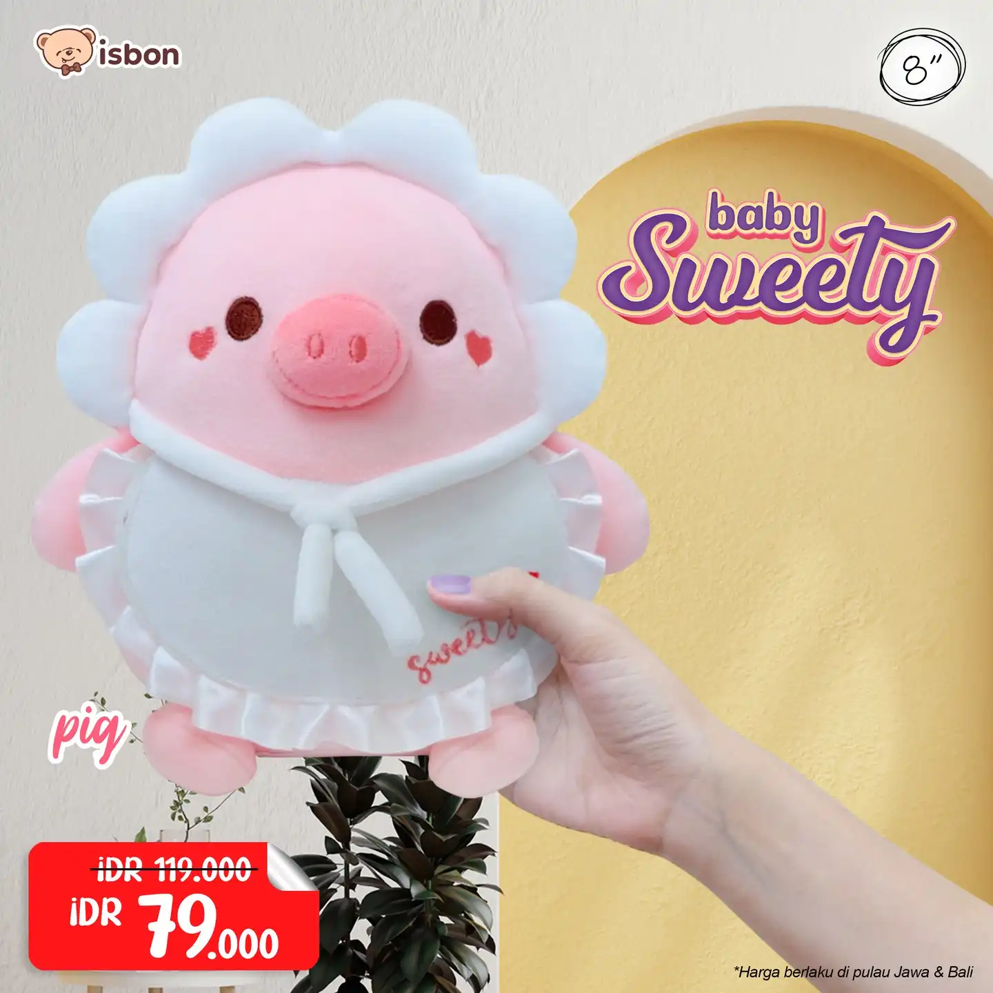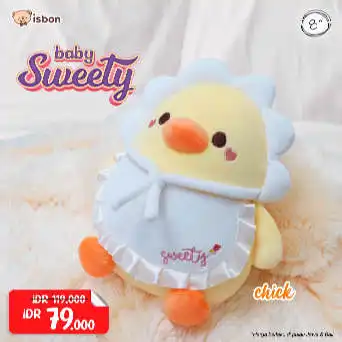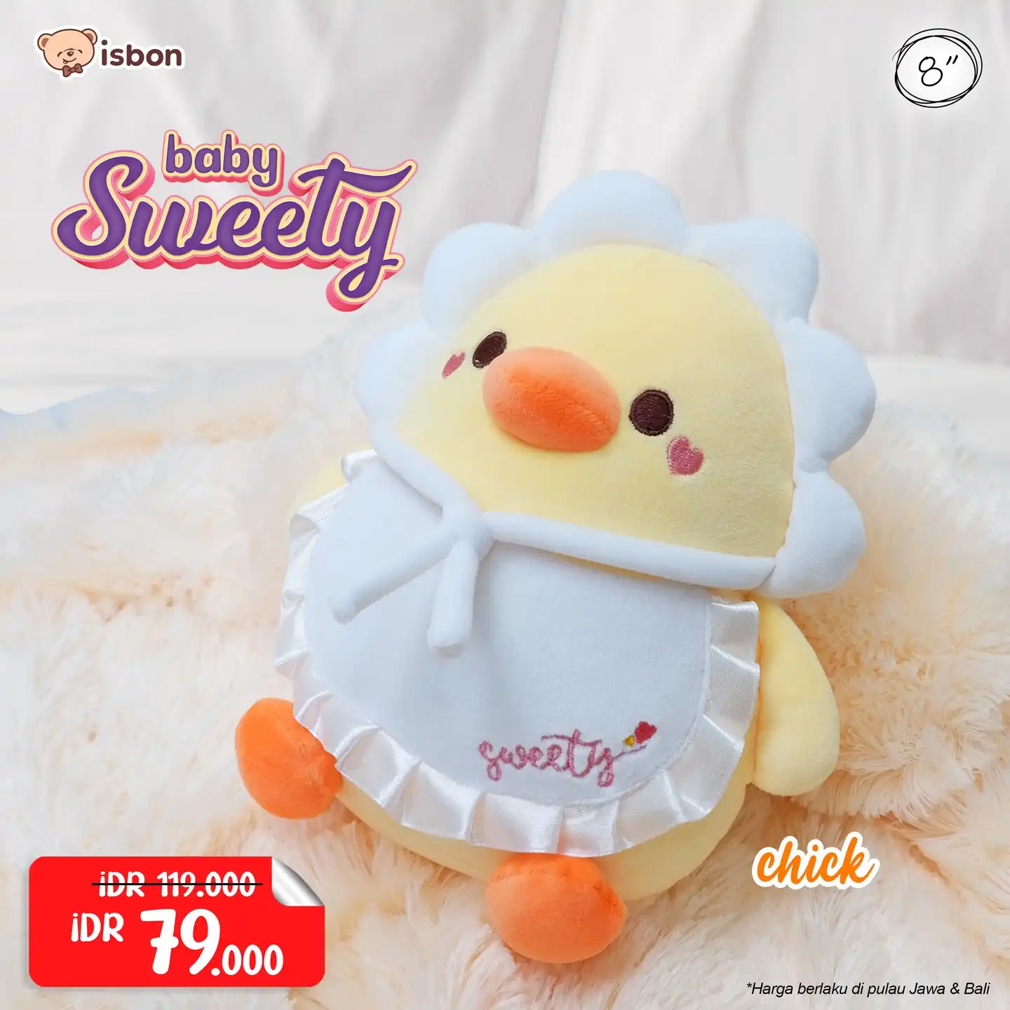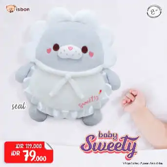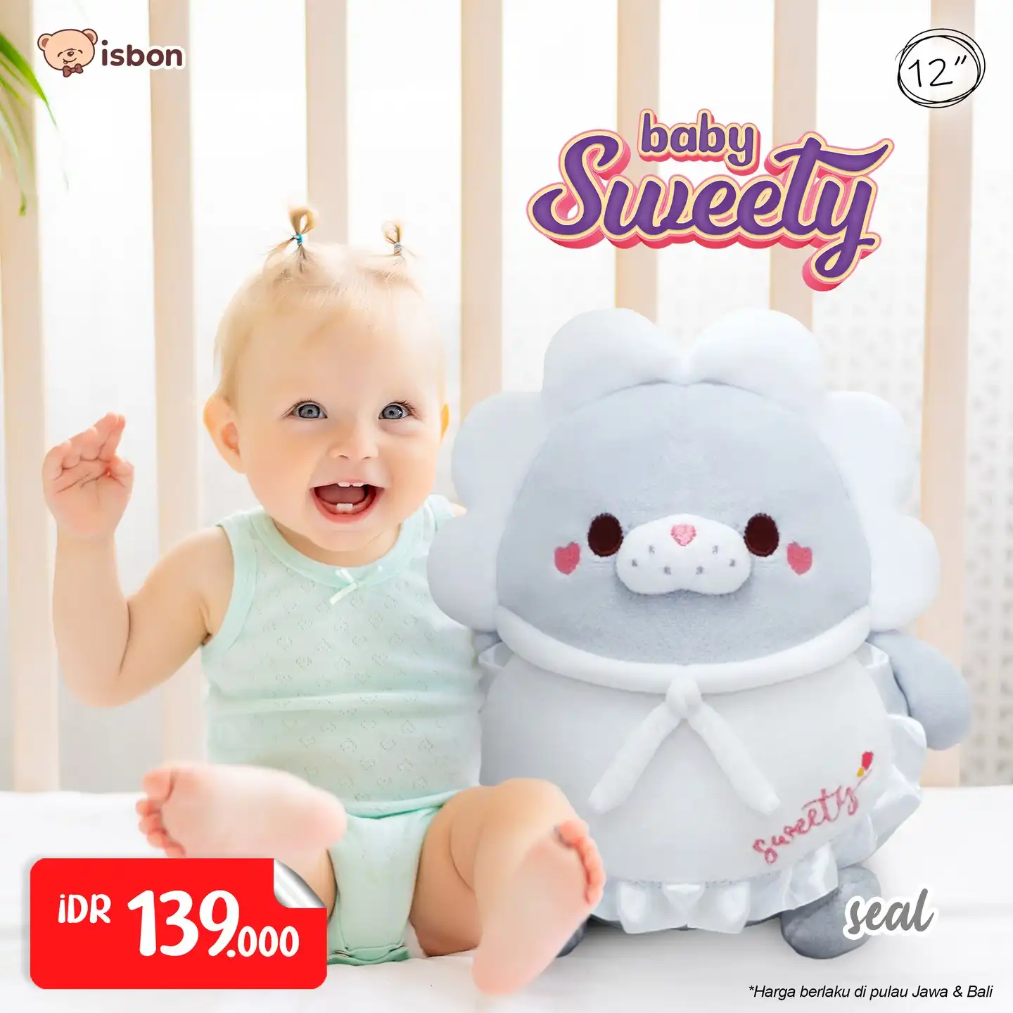 Boneka bayi karakter hewan yang lucu, memakai pakaian bayi warna putih, dengan badan yang mungil menjadikan boneka ini semakin lucu dan imut.