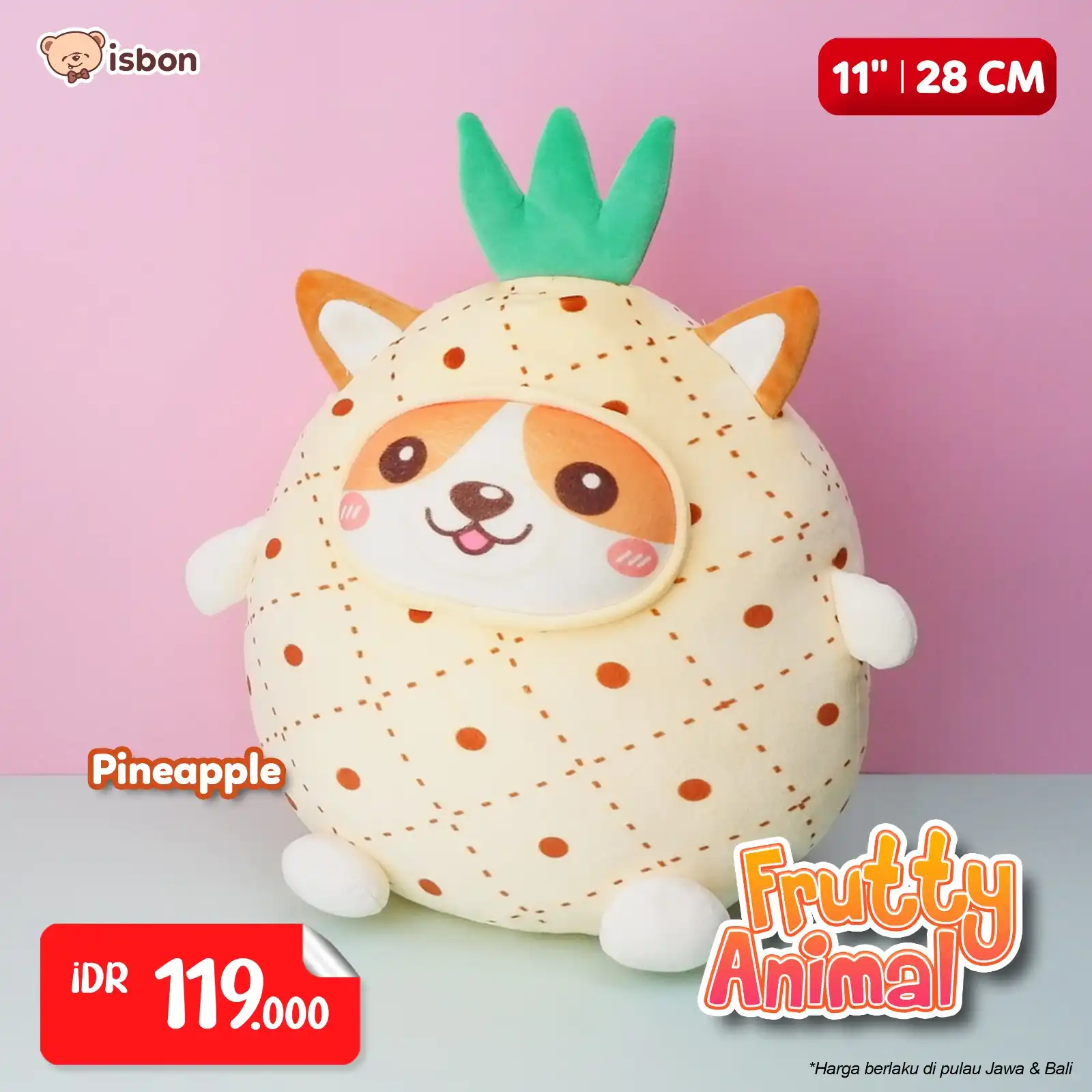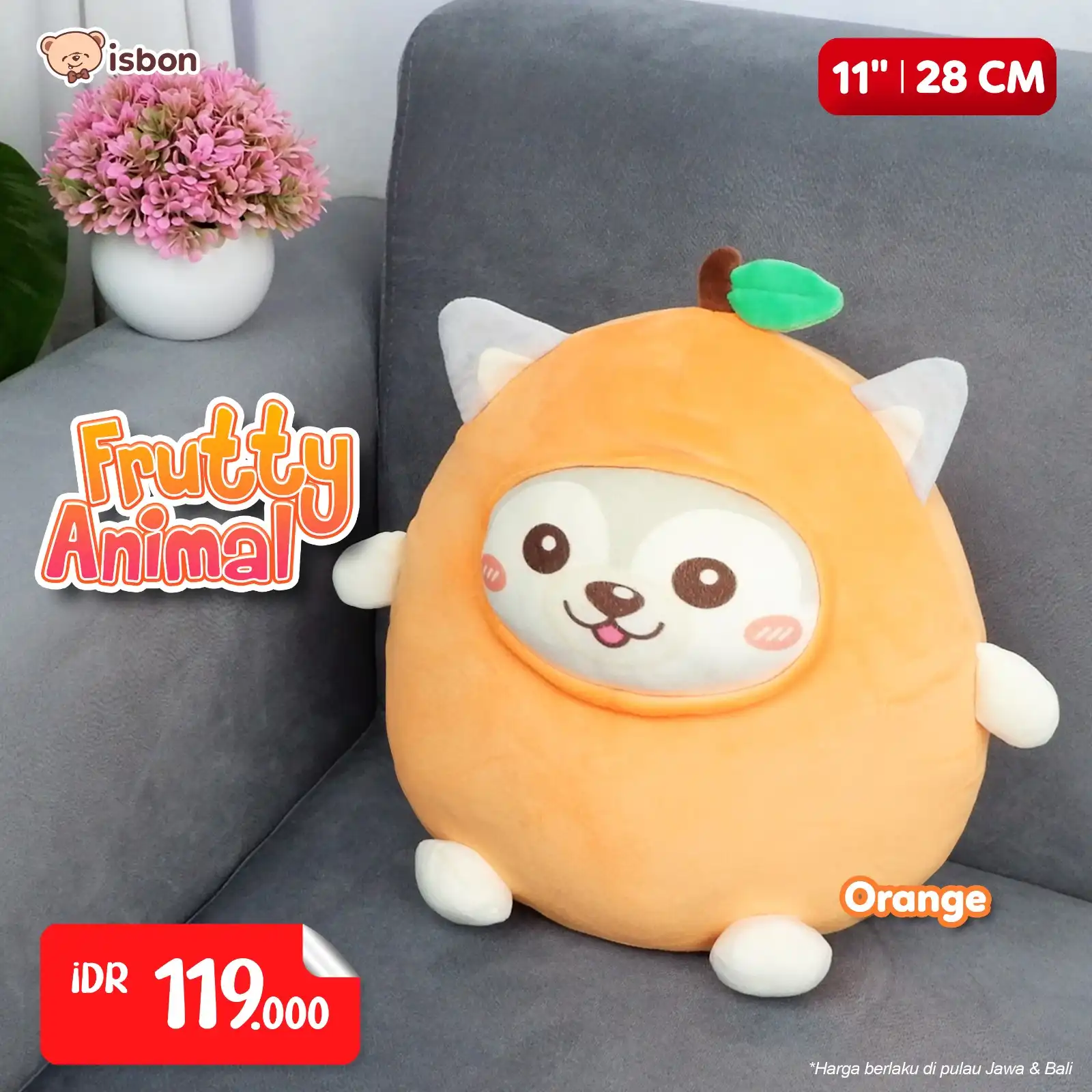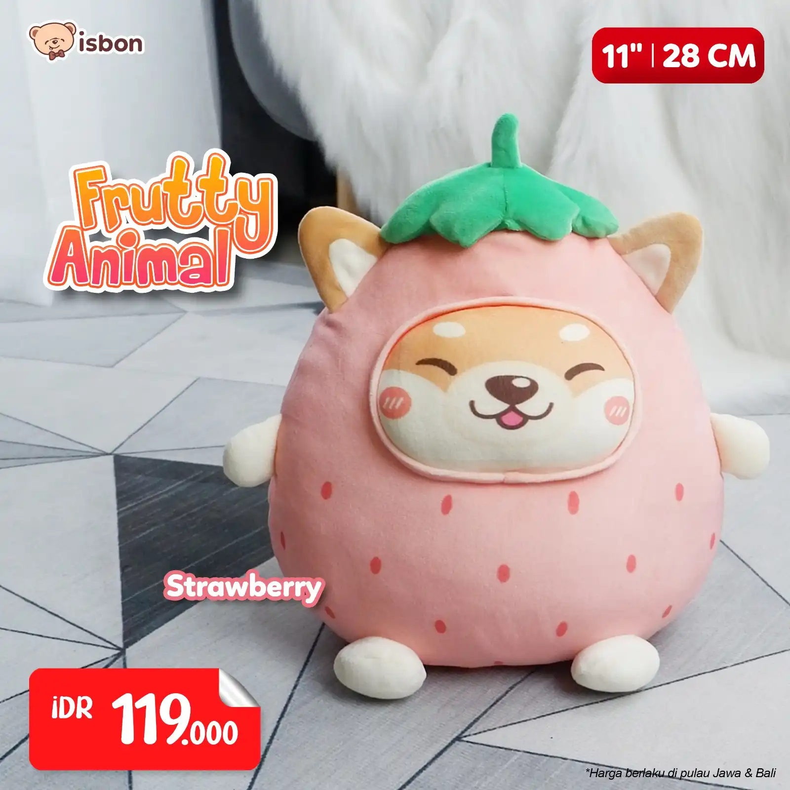 dengan buah buahan dan binatang, boneka ini memiliki ukuran sekitar 30 cm,c