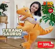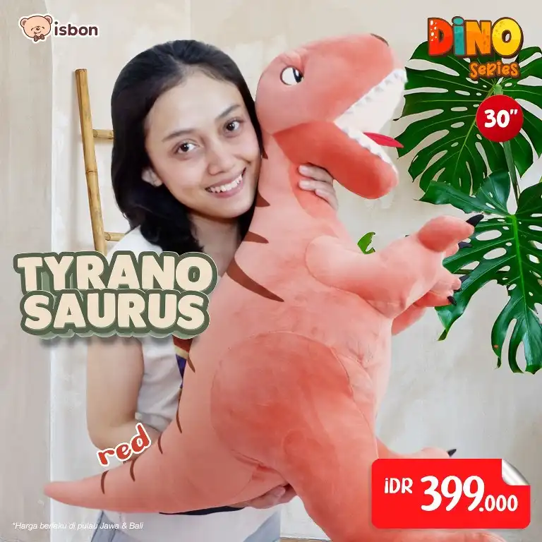 Boneka karakter dino dengan nama panggilan tyranosaurus ini memiliki ukuran tubuh yang sangat jumbo yaitu sekitar 70 cm,