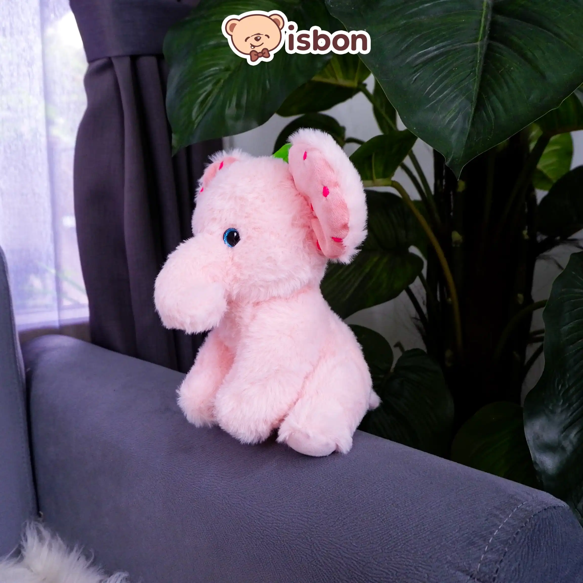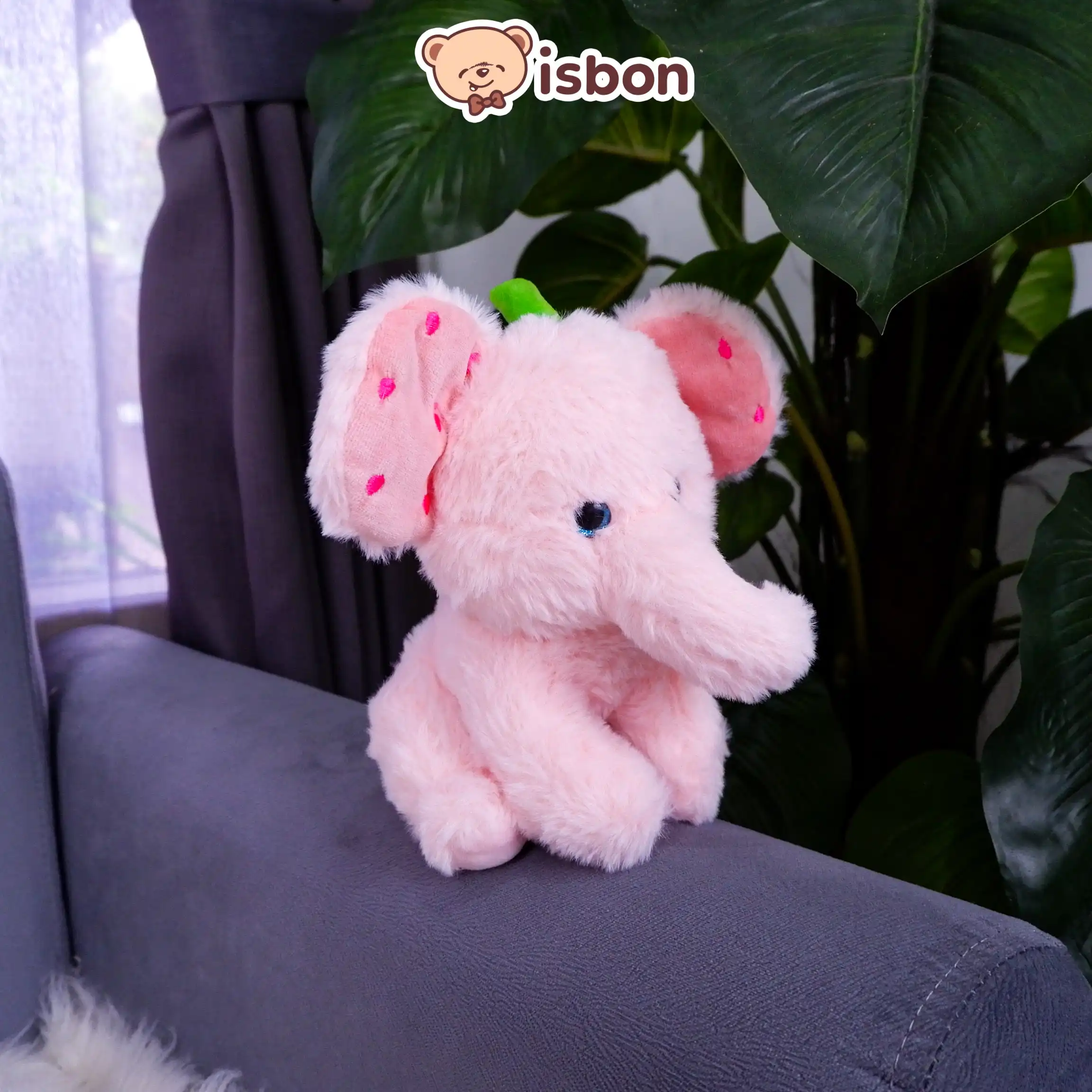 - Desain Menarik: Gajah duduk berwarna pink dengan detail strawberry, cocok untuk koleksi mainan anak.