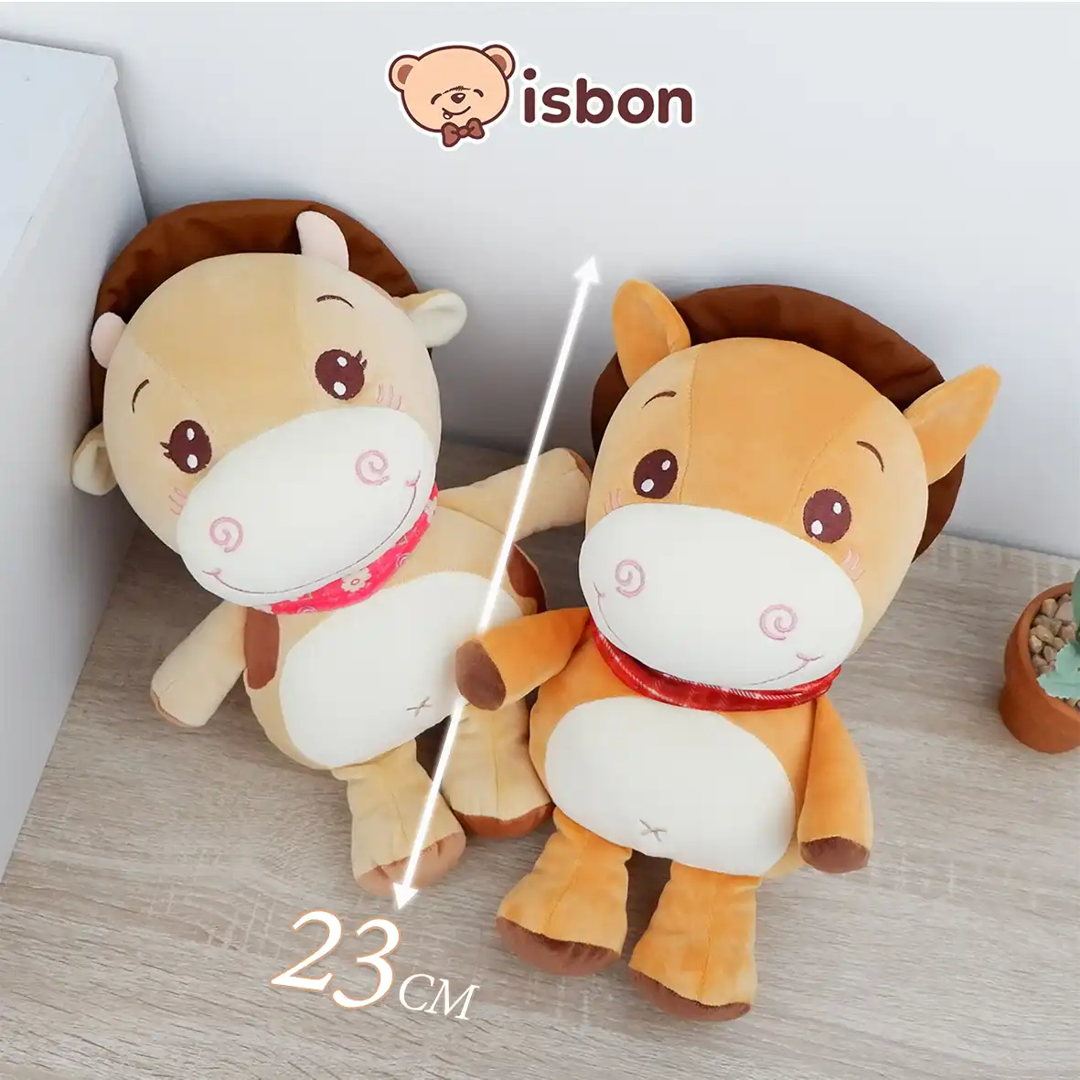 dibagian leher yang lucu, ada 2 karakter hewan yaitu sapi, dan keledai