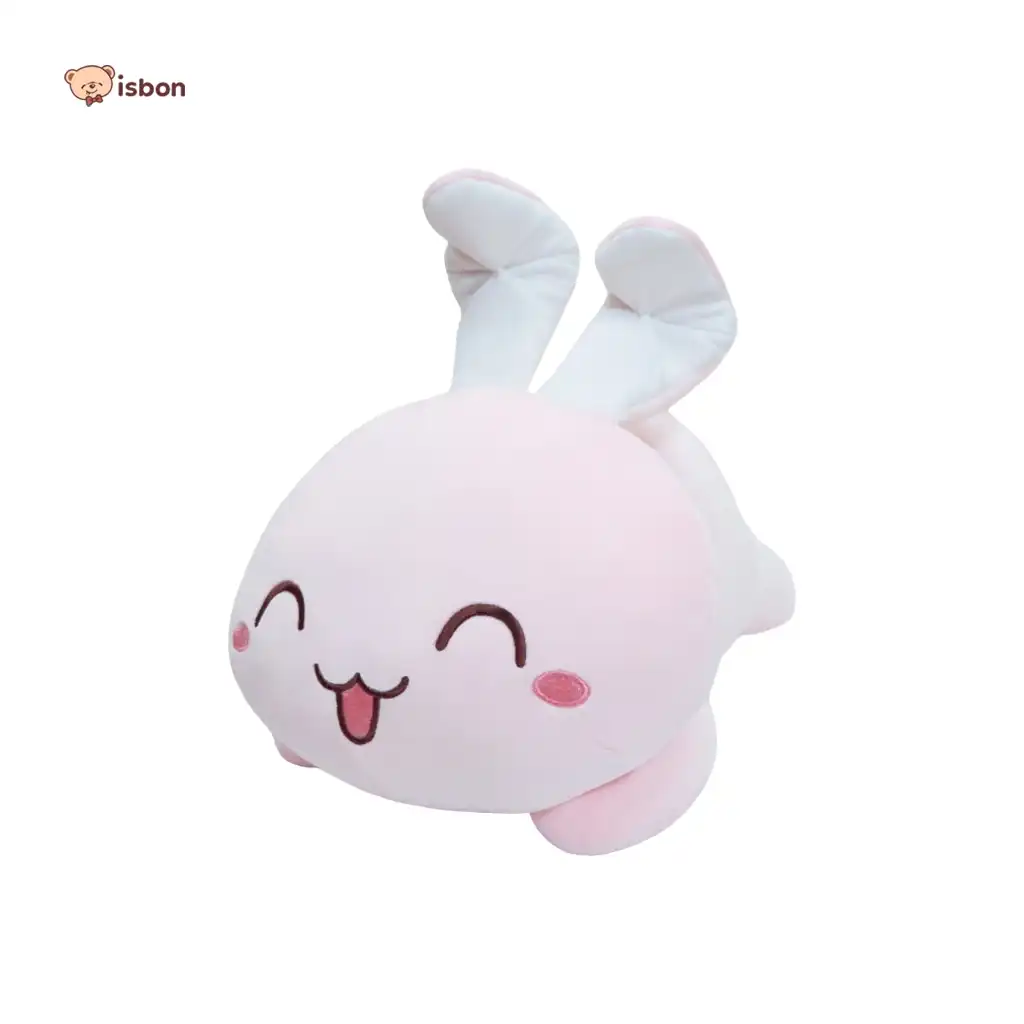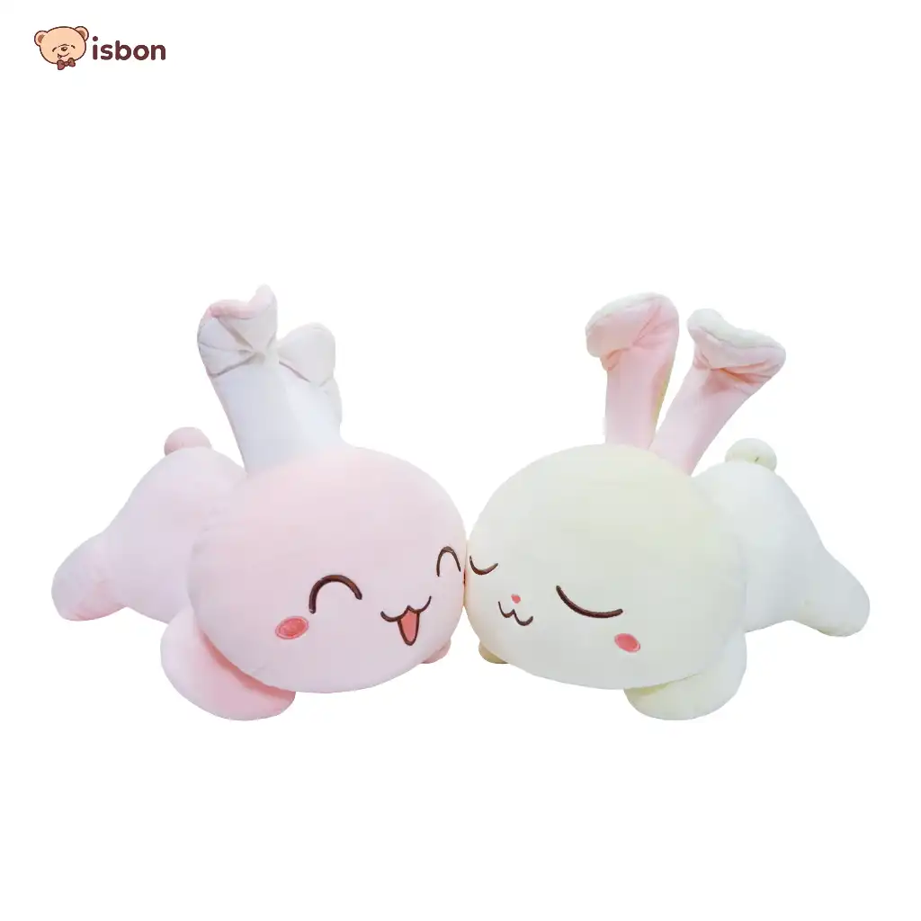 Bantal bentuk kelinci dengan 2 warna pink dan cream sepasang cowok dan cewek. ekspresi sangat lucu bahan lembut. nyaman untuk digunakan.