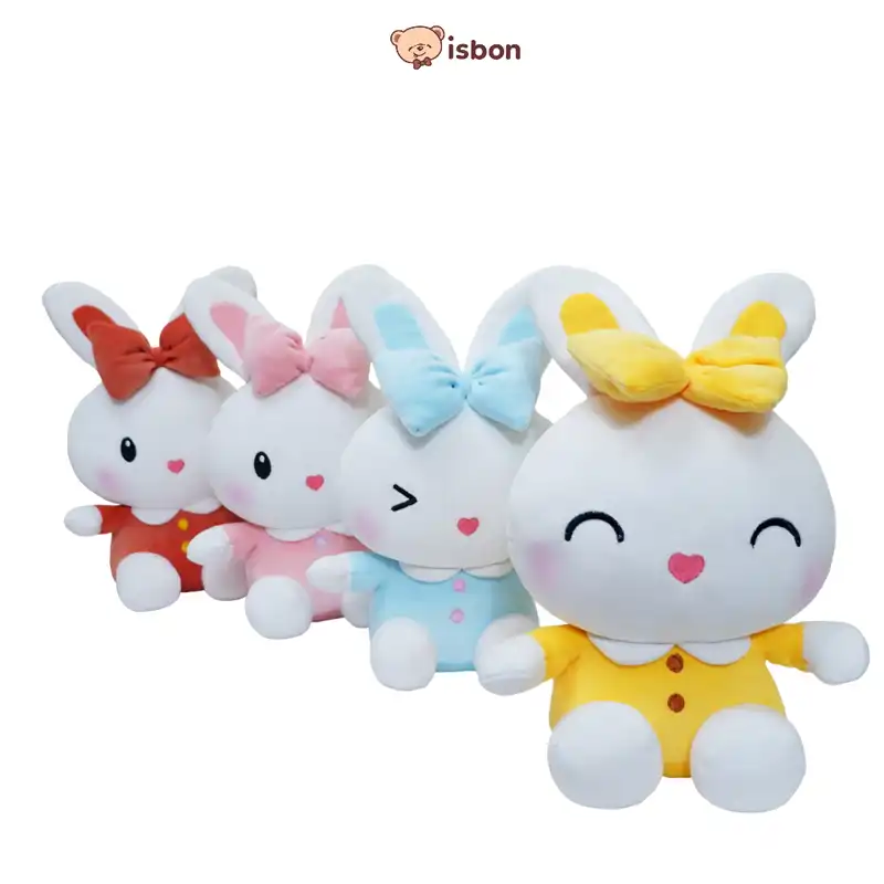 Boneka dengan karakter kelinci, boneka ini mempunyai 4 warna dan mempunyao ekspresi yang berbeda-beda. berbahan lembut dan lucu, cocok untuk hadiah ulang tahun anak.