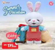 Boneka dengan karakter kelinci dengan tambahan bajumusim panas, berbahan lembut dan lucu, cocok untuk hadiah ulang tahun anak.