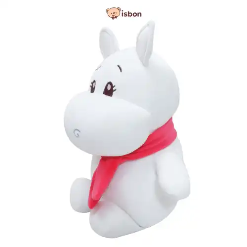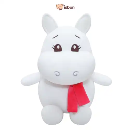 Boneka kuda nil berwarna putih dengan aksesoris syal berwarna merah yang sangat lucu, bahan lembut dan sangat cocok untuk hadiah/kado.