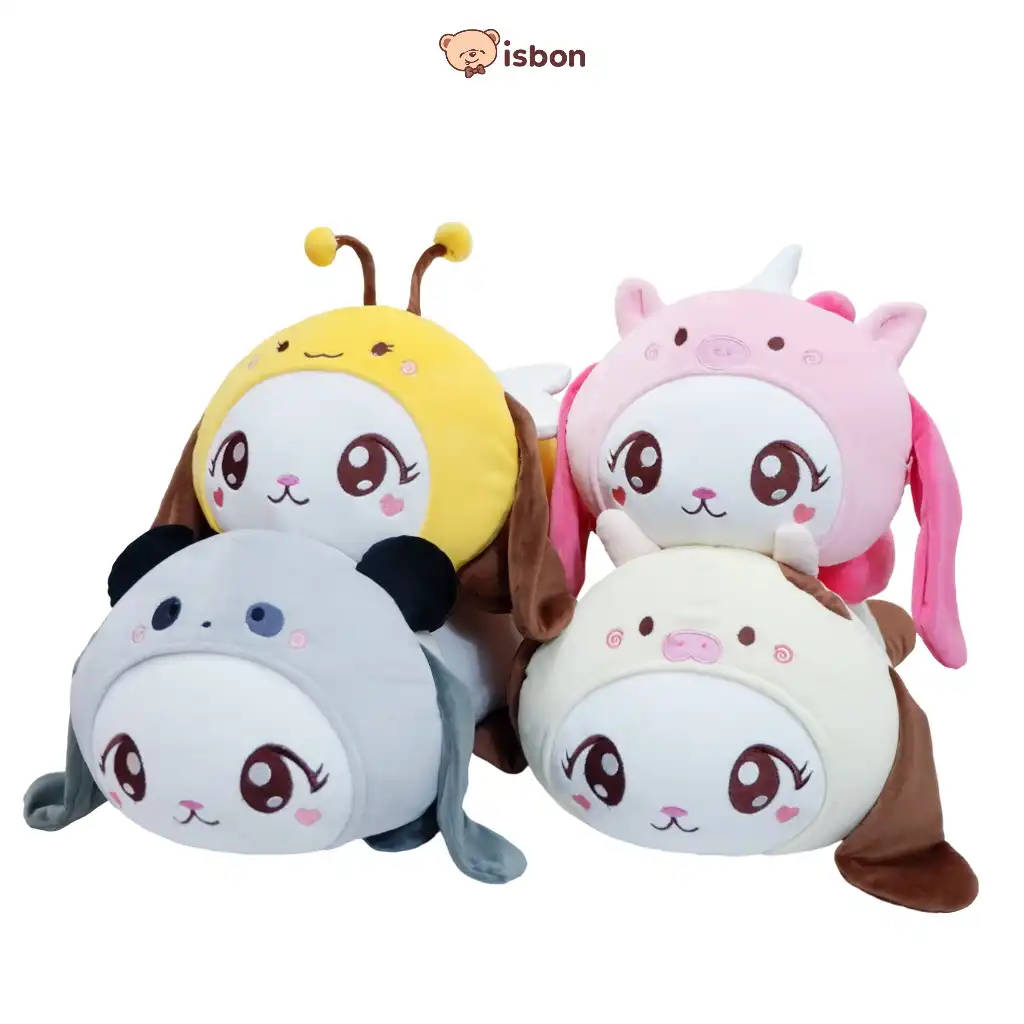 Boneka dengan karakter kelinci yang berkombinasi dengan beberapa hewan lucu dan menggemaskan, bahan yang halus dan sudah bordir di bagian mata, berbahan lembut dan lucu, cocok untuk hadiah ulang tahun anak.