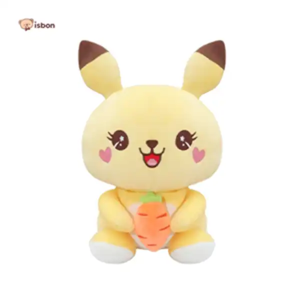 Boneka anak karakter kartun pikatchu memegang wortel yang super lucu bahan sangat lembut. sangat cocok untuk segala usia.