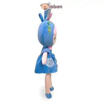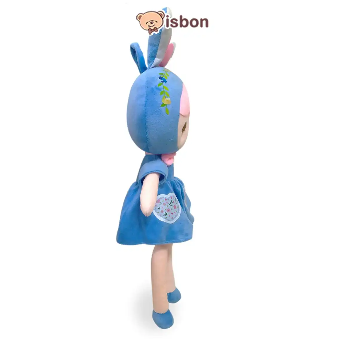 dengan karakter carol rabbit warna biru,dengan pakaian rok warna biru