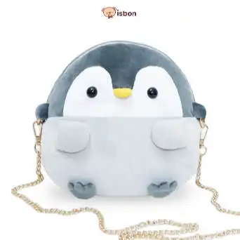 Tas Slempang anak boneka hewanpinguin berwarna abu-abu sangat lucu, bahan super lembut.
