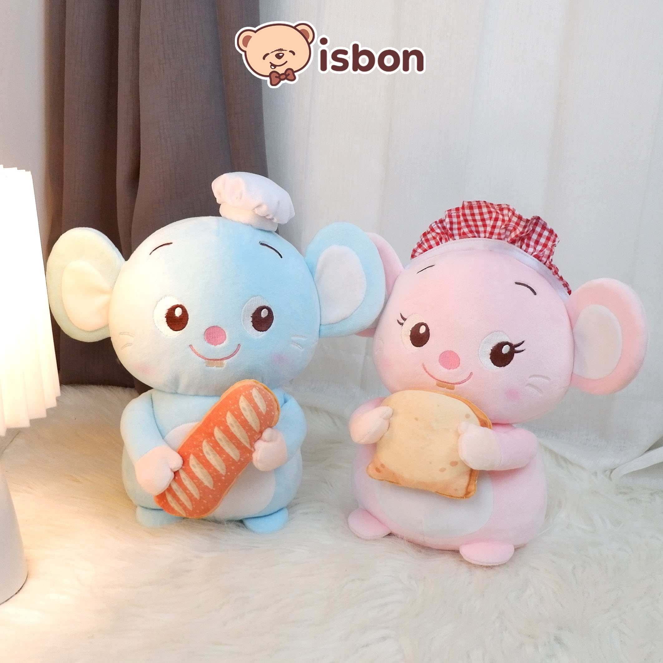 Cari kado unik yang beda dari biasanya? Kenalan sama si Mousie! Boneka tikus super lucu yang sedang memegang roti (bread) dan memakai topi kecil yang modis. Hadir dalam versi couple yang cocok banget untuk kado pasangan maupun anak-anak.